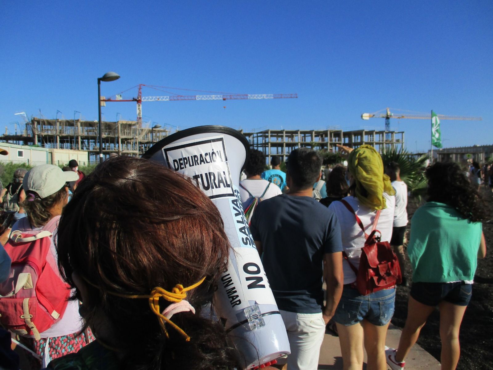 Ha sido la intervención de dos valientes mujeres (y numerosas asociaciones) que se han subido a las grúas y que amenazan con no bajarse hasta la paralización efectiva del hotel. Hoy tenemos una orden de paralización del Ministerio de Transición Ecológica. Lo que ha demostrado que la lucha y la movilización funcionan.