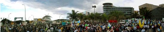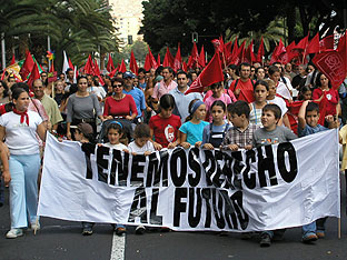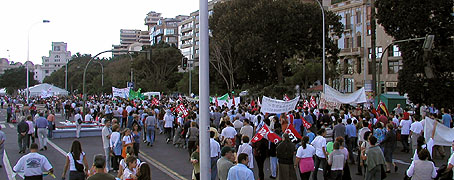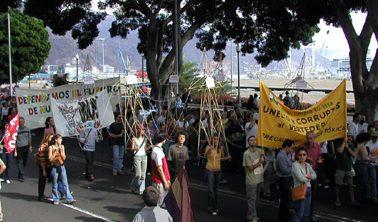Gran manifestación en Santa Cruz, el 23 de Noviembre de 2002. Participaron entre 120.000 y 140.000 personas, incluyendo los políticos hipócritas que, un par de años antes, estaban a favor. Algunos socios y simpatizantes de ATAN montaron un tendido eléctrico con torres de fabricación propia, que también recorrió la manifestación desde el principio hasta el final. Energía - Más información sobre los disparates energéticos en Canarias en nuestra sección dedicadaIr a... |