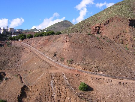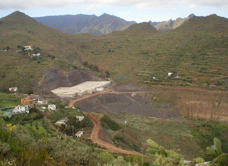 Nueva salvajada de la Administración Pública en el Parque Rural de Anaga: la pista del Barranco de la Leña a Los Campitos La administración pública (no sabemos quién exactamente, aunque lo sospechamos) realiza, nuevamente, unas obras manifiestamente ilegales dentro de los límites del Parque Rural de Anaga, incumpliendo con toda la normativa del Plan Rector de Uso y Gestión del mismo. El día 24 de Octubre de 2003, esta asociación presentó una petición de información acerca de la construcción de una pista por el cauce del Barranco de La Leña, partiendo del barrio de Residencial Anaga, en Santa Cruz de Tenerife. Además, también denunciamos que, por el lado de Los Campitos, se estaba procediendo a construir otra pista, presumiblemente para unirse a la primera. Se entrega copia de dicho escrito en un documento anexo. Fue dirigido al Ayuntamiento de Santa Cruz de Tenerife, al Área de Medio Ambiente del Cabildo de Tenerife (Parque Rural de Anaga) y al Consejo Insular de Aguas de Tenerife. Los números de registro, todos ellos de la Subdelegación del Gobierno son, respectivamente, 633840000013035, 33840000013017 y 633840000013018. (Pulse aquí para ver dicho escrito). En recientes visitas a las obras, hemos podido constatar los siguientes hechos: Por el lado de Residencial Anaga (parte baja del Barranco), hay un cartel indicando que la obra es del Consejo Insular de Aguas, y la nombra como "Reparación y sustitución de los daños causados por las lluvias torrenciales del 1 de Marzo de 2002", siendo financiadas por el Cabildo de Tenerife a un 25%, el Gobierno de Canarias, otro 25% y el Ministerio de Medio Ambiente en un 50%. La inversión total es de 1.139.194,23 Euros.(ver foto). Según la información a la que ha tenido acceso esta asociación, dicho cartel hace referencia sólo al primer tramo del barranco, siendo el resto una obra diferente. La otra obra es una pista que se integra en la ladera occidental del barranco, penetrando completamente en la zona de uso moderado ZUM 3.2 del Parque Rural de Anaga, identificada como "Laderas de Anaga Sur". Se introduce en el Parque Rural prácticamente desde el comienzo, ya que los límites están algo más abajo de la Charca de Fumero, al lado de la cual discurre la pista (ver foto). Por el lado de Los Campitos, la pista empieza junto al Campo de Fútbol, también dentro del Parque Rural, pero en una pequeña parcela considerada de uso especial (el propio estadio). Inmediatamente, se interna en la misma zona de uso moderado ZUM 3.2. Desciende por el material acumulado de la construcción de la presa de Los Campitos, protegida sólo por un pequeño muro. En este punto, causa un gran impacto, al cortar el material completamente (ver foto). Lo peor es que dicho talud fue afectado seriamente por las inundaciones de 2002 y, de repetirse una lluvia de características similares, probablemente acabaría con la pista, y con la inversión realizada. Tras el desmonte, y siempre dentro de la zona de uso moderado, continúa por la ladera norte del Barranco de Anchieta, al otro lado de la Urbanización Ifara, desde donde es claramente visible. Aquí el impacto visual es también brutal (ver foto). Para esta parte del trazado, se ha vertido escombros sobre el barranco de Anchieta, afectando a la vegetación y geología del mismo, así como a la Cortadura Grande, lugar por el que atravesaba el antiguo canal, pasando del Barranco de Anchieta al de La Leña. Esto provoca un tremendo impacto, visible incluso desde el centro de Santa Cruz (ver foto). En las proximidades de la Cortadura Grande, precisamente donde la pista debe franquear la degollada existente entre el Barranco de Anchieta y el de La Leña (si es que van a unirse), hay un desvío que sube hasta una torre de Unelco, posiblemente existente antes de las obras, pero también existe una parte que continúa hacia la cortadura, provocando el mayor impacto, por verter directamente sobre una ladera vertical de importante flora rupícola y fauna vertebrada (ver foto). En el momento de hacer las fotos, había tres cernícalos en la zona. No sabemos si dicho "tramo" va a continuar por la cortadura, o se va a construir el túnel, o bien no se va a unir esta pista con la del Barranco de La Leña, con lo cual no tendría sentido que haya llegado tan lejos. En la base del desmonte debajo del campo de fútbol, se ha comprobado maquinaria trabajando y removiendo éste, posiblemente en un intento de reparar los daños del temporal de 2002, aprovechando la existencia de la nueva pista. También son obras comprendidas dentro del Parque Rural, por lo menos hasta el cauce del Barranco, que es donde se encuentra el límite del mismo (ver foto). Bajo la pista, se está procediendo a enterrar un tubo de considerables dimensiones, posiblemente procedente de la desaladora de la Dársena Pesquera, con destino al depósito de Cabecera nuevo, construido sobre el embalse de Los Campitos. Dichas tuberías se están soldando y ensamblando en los terrenos anexos al campo de fútbol de los Campitos, parte de los cuales también entran en la Zona de Uso Moderado del Parque Rural de Anaga (ver foto). Además, en dichos terrenos se ha realizado todo tipo de excavaciones, movimiento de tierras, y se acumula material y equipos. Las obras, no tienen ningún cartel indicador de las mismas, en las que figure la licencia, los presupuestos, los plazos o el autor. El punto 5.2.3.1 del PRUG del Parque Rural de Anaga indica, como actividad prohibida para las zonas de uso moderado, "Todas aquellas que puedan suponer modificaciones sustanciales y/o alteración, de la morfología, suelos, red de drenaje, vegetación o paisaje de estas áreas, salvo las excepciones recogidas en las actividades autorizables. Esta prohibición incluye:
