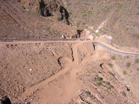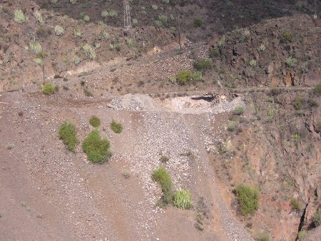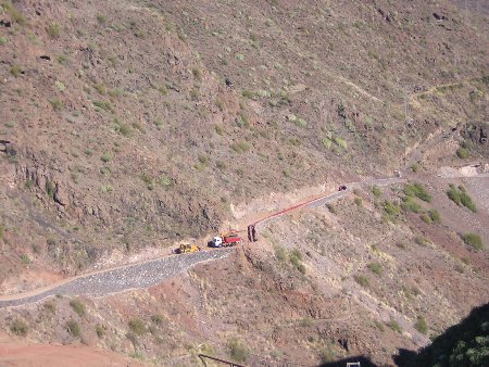 La zona también está incluida dentro de la red NATURA 2000, como lugar de interés comunitario LIC ES7020095. Asimismo ha sido declarada ZEPA (Zona de Especial protección para las aves) según la directiva 79/409/CEE. Si, tal y como indicamos en esta nota, las obras tienen que ver con el traslado de las aguas potabilizadas desde la desaladora de la Dársena Pesquera al nuevo depósito de cabecera, queremos recordar también que, hace ya más de dos años, denunciamos precisamente las obras de dicho depósito de cabecera, financiado por el Ministerio de Medio Ambiente. Se trata de un tremendo desmonte, en el que se llevaron por delante media montaña (ver foto), y que, aunque estaba fuera del parque, los escombros fueron arrojados parcialmente dentro de éste, y luego fueron arrastrados en parte por la riada de 2002, colapsando el cauce alto del Barranco de Anchieta. Todo un arte a la hora de hacer las cosas con criterios de calidad y buenas maneras. En cualquier caso, la administración pública debe de dar ejemplo a la hora de realizar obras en el parque, y no cometer barbaridades de igual o mayor calibre que las que algunas veces denuncian. Esto también está contemplado en el punto 7.4 del PRUG, referente al ordenamiento arquitectónico del parque, en el que se resalta la ejemplaridad de las edificaciones y obras llevadas a cabo por la administración pública. Hemos presentado también nuestras quejas y fotografías al Ministerio de Medio Ambiente, y también a la Comisión Europea, en vistas de que, como siempre, la administración local no nos hace ningún caso. |