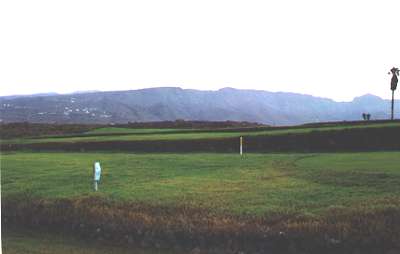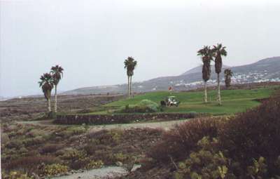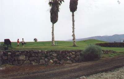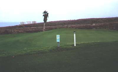 Otro de los carteles. Este se encuentra algo dañado, no sabemos si de un pelotazo. Seguro que los turistas se quejan de la presencia de estos carteles estorbando en el campo de golf. |