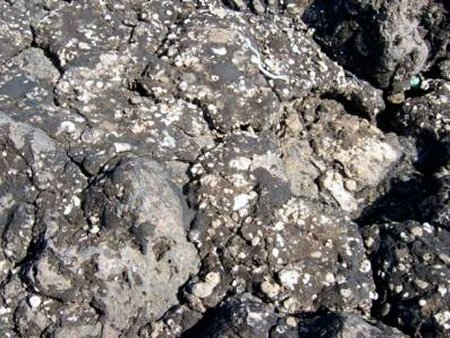 Foto 9: Primer plano de unas piedras cubiertas de piche. |