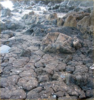Foto 6: Tramo de costa completamente cubierto de petróleo. Aquí no se dijo nada en la televisión, ni vinieron voluntarios a limpiar, como los que se fueron a Galicia. |