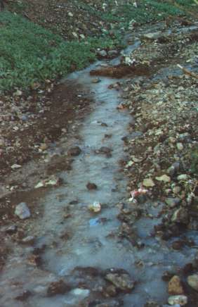 Radazul, uno de los enclaves costeros más feos de Tenerife, urbanizado de mala manera por un acantilado en el que existen edificios a los que se accede por la azotea, también tiene un puerto deportivo de los más antiguos de la isla. Al lado, una pequeña playa, la de la Nea, está invadida por aguas fecales provenientes de un vertido ilegal. En la foto, vemos el vertido, y detrás, alguno de los bellos edificios de Radazul. |