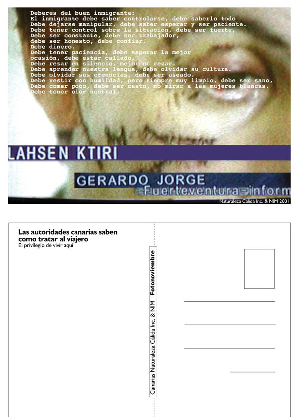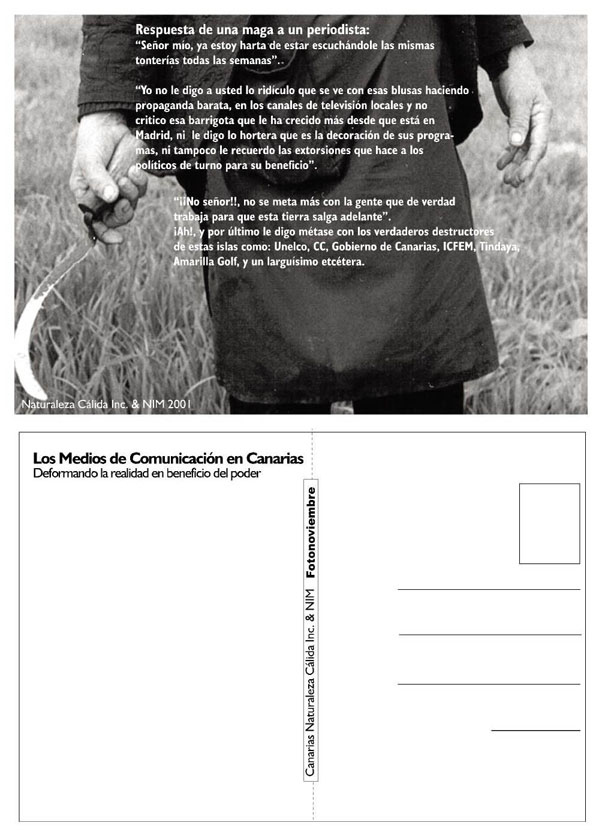 NIM Para más información acerca de quiénes son NIM y de la censura del Cabildo de Tenerife, pueden visitar la página de NIM, en: www.arteencanarias.com . ATAN, como asociación víctima de la censura, al igual que NIM, decide replicar en esta WEB lo que aparece en la original, pra que haya más fuentes de distribución de las postales.