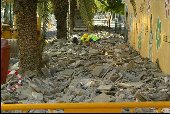 Entre las cosas más curiosas que encontramos en esos artículos es que se habla de un plazo de ejecución de dos meses. Hoy, casi tres meses después, todavía no han terminado, y encima la obra no ha servido para nada, pues pasará por otro sitio. ¿Es esto un antecedente de lo que pasará con el resto de las obras? ¿Sufriremos un continuo retraso y traslados y modificaciones del proyecto sobre la marcha? ¿Acabarán antes del 2030, a este paso? En el Diario de Avisos del 18/8/2004, se cita textualmente, en referencia a Bravo Murillo: "[...] Asimismo, Metropolitano detalla que en la segunda etapa prevista en esta calle, se procederá a hacer exactamente lo mismo pero en la acera de enfrente, mientras que en la calzada se instalará la plataforma donde irá el tranvía y en una tercera parte se trabajará en la mediana de la calle. En los dos casos, recalca la compañía, habrá controles de la circulación en ambos sentidos.[...]". Suponemos que la obra ya realizada en Bravo Murillo (incluyendo la ocupación del solar de la esquina con Imeldo Serís) la concluirán, y que alguien se responsabilizará del derroche de dinero que supone hacer las cosas como siempre las hace el Cabildo, sin control, sin profesionalidad, sin planificar y con remiendos de última hora, eso sí, siempre guardando la imagen. Hay más logotipos del tranvía por metro de obra que logotipos del Cabildo por kilómetro cuadrado en la isla. ¿Tendrá Melchior realmente orígenes alemanes? Porque su forma de actuar recuerda más bien al "marketing" norteamericano, estilo "Eurodisney", vamos. Los motivos por los que se ha decidido este cambio, según publicaba ayer el artículo de El Día, son los problemas que plantea el solar de Unelco (cosa extraña) y la presencia de dos bienes de interés cultural: el Cuartel de San Carlos y la Ermita de San Telmo. Dejando al margen el hecho de que del Cuartel de San Carlos no quedan ni las ventanas, debido a las obras de "rehabilitación" que lleva a cabo el Gobierno de Canarias, nos sorprende que el Cabildo se venga a dar cuenta ahora de la presencia de estas edificaciones, como si las acabaran de construir. Por otro lado, en un intento de "ocultar" esta pésima gestión, nos bombardean con las conocidas ventajas del tranvía: