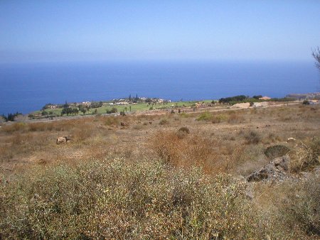 Foto 5: Gran contraste de la hierba con el entorno árido del sur de La Gomera. Al fondo, el Teide... |