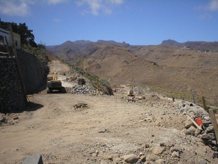 Foto 10: Otra foto de las obras de la pista de Tapahuga. A la derecha, al fondo del barranco, los cultivos que se verían afectados. |