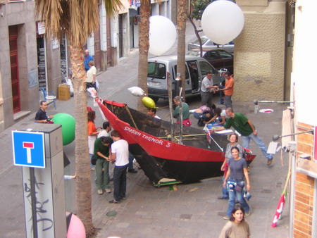 Los preparativos de la "fiesta", por fuera de nuestro local, en los Astilleros de Santo Domingo, varios socios fabrican el "Queen Trenor".