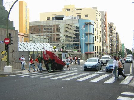 Nuestro barco por la Calle Méndez Núñez.