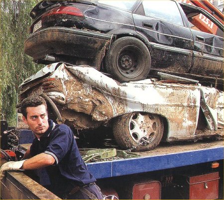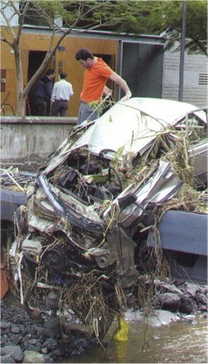 Coches afectados Miles de coches fueron afectados, muchos de manera catastrófica, no quedando nada entero de los mismos. Estas fotos son una muestra de los mismos.